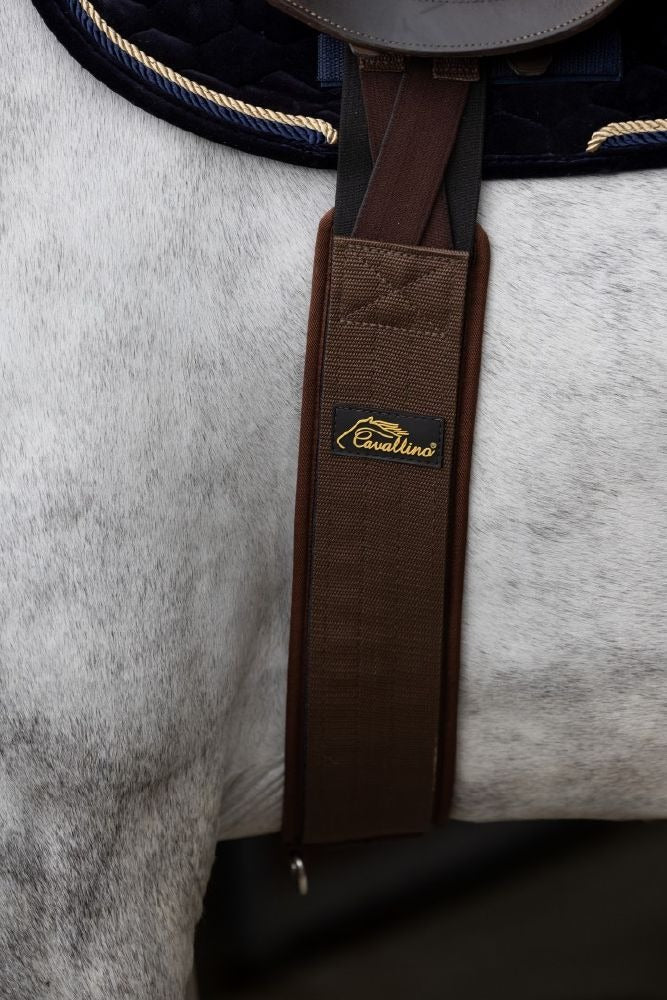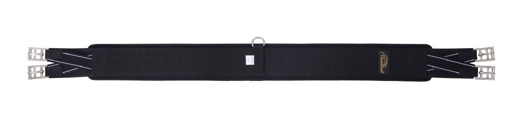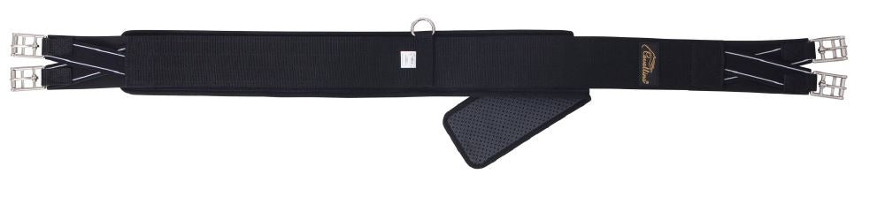 A double buckle, double end elastic girth with removable Anti-Slip, breathable rubber backing and stainless steel buckles.