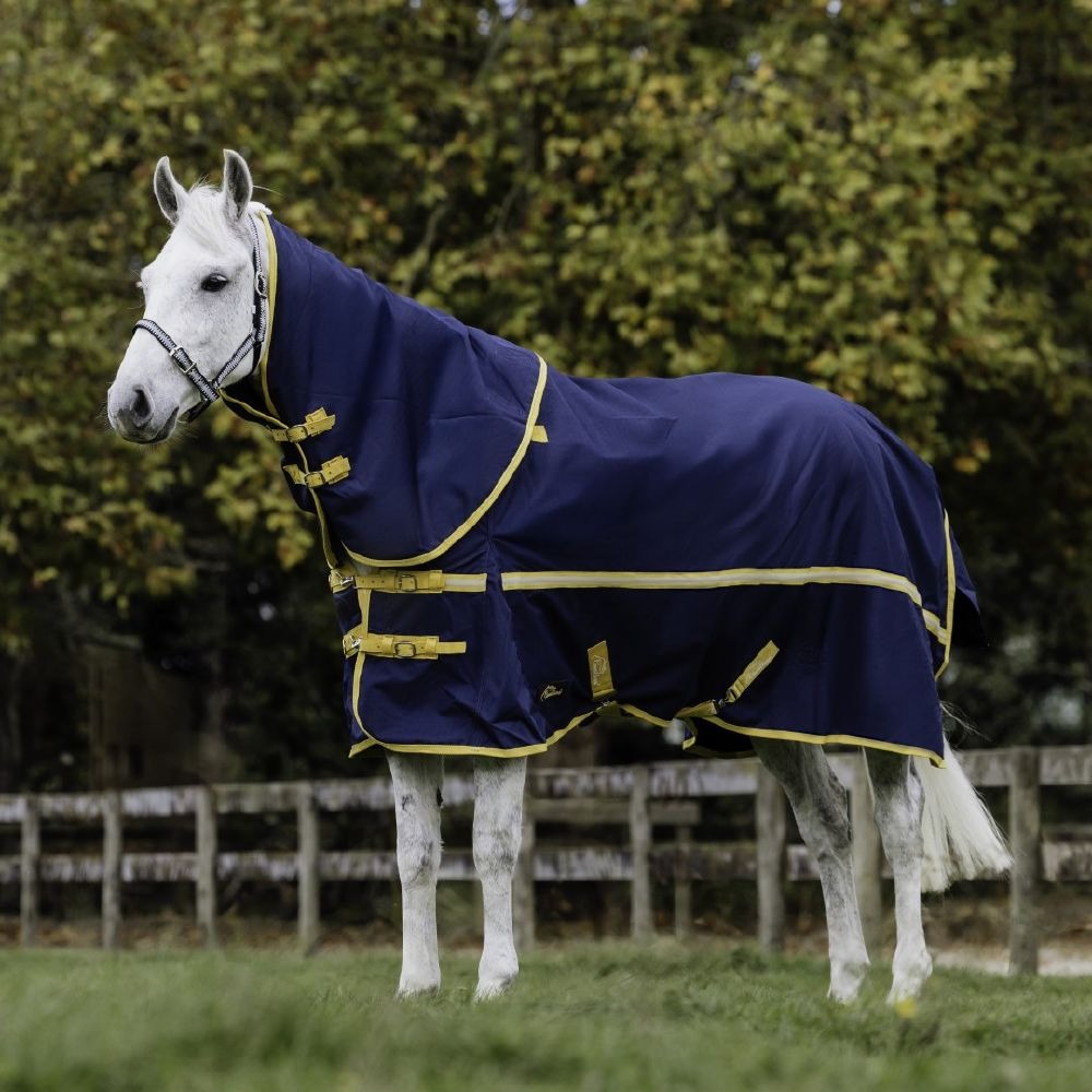 Rug with detachable neck cover to help reduce mane rub.