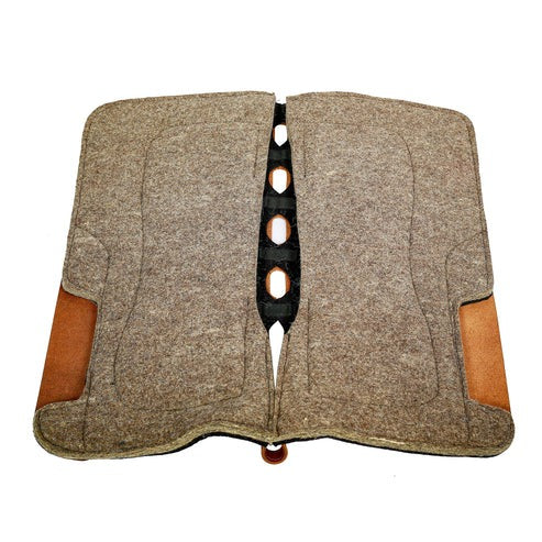 The Contoured Relief Air Pad is made from 18mm high-density premium wool felt, offering superior comfort and durability. With a sleek black and brown leather design and squared edges, this pad provides a stylish, functional fit for your saddle.